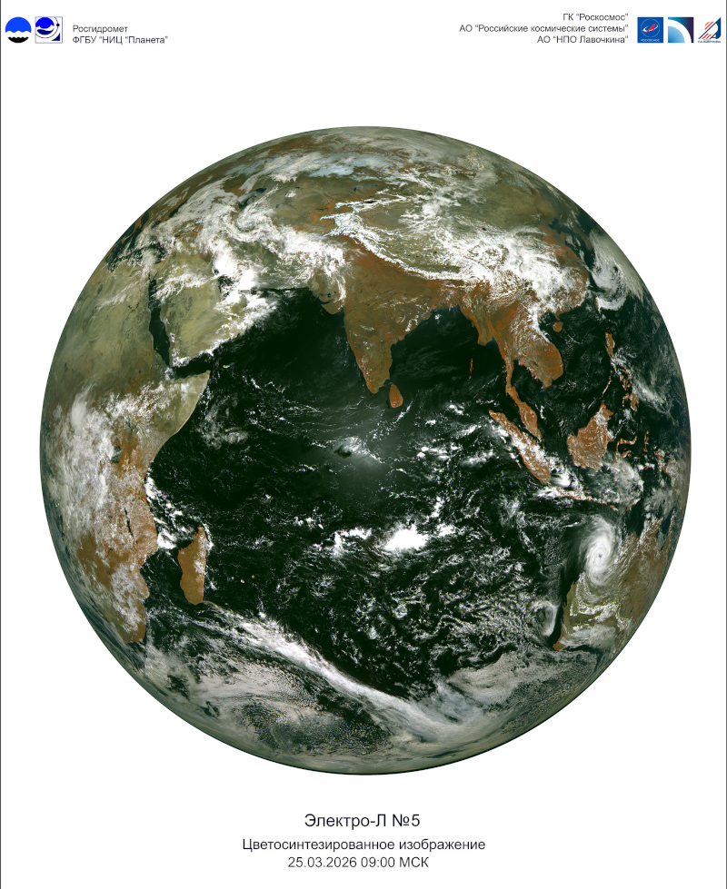 Гидрометеорологический спутник «Электро-Л» №5, запущенный в феврале, передал на Землю первый снимок. Аппаратура работает в штатном режиме, сообщили в «Роскосмосе».